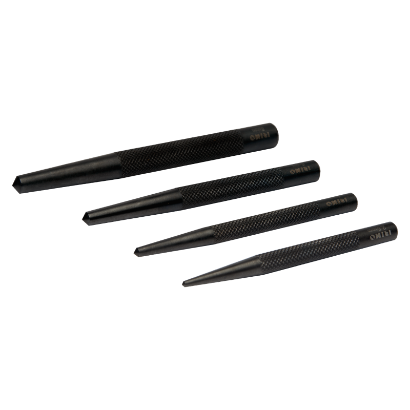 Juego de 4 o 5 granetes redondos Irimo de cromo vanadio y cuerpo con acabado irregular que evita el deslizamiento involuntario. Ideales para trabajos de golpeo.