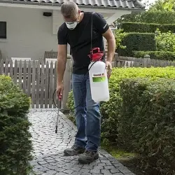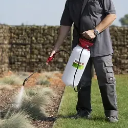 Sulfatadora a presión Kreator con tanque de 8 litros. Es perfecta para rociar plantas en jardines medianos. Puede rociar agua, fertilizantes y pesticidas líquidos.