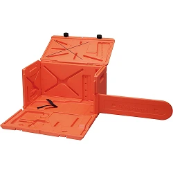 Caja de plástico para motosierras Husqvarna Powerbox, ideal para transportar tu motosierra y complementos con la máxima protección. Valida para motosierras con espadas hasta 45 cm.