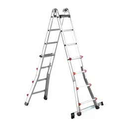 Sus bisagras articuladas permiten posicionarla apoyada en la pared o en tijera, permitiendo la realización de trabajos a diferentes niveles, y salvando obstáculos.