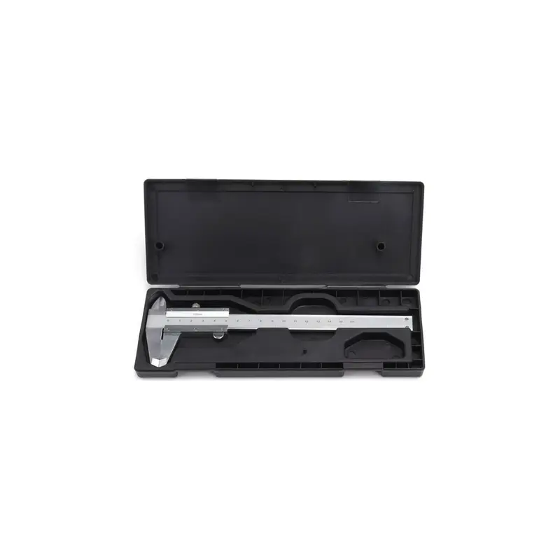El calibre se presenta en un estuche rígido de plástico, perfecto para protegerlo de golpes, polvo y suciedad cuando no está en uso, evitando deformaciones y alargando su vida útil. Su formato compacto y ligero lo convierte en un instrumento fácil de transportar y tener siempre a mano.