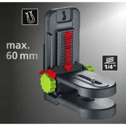 Las cruces láser forman una función de plomada para trabajar simultáneamente en suelo y techo. Incorpora modo de inclinación manual para establecer pendientes y modo receptor manual para aplicaciones exteriores. Sus múltiples accesorios —incluido el trípode SpiderStand de 150 cm con función UpsideDown, soportes magnéticos regulables, tablilla de mira y gafas de visión— lo convierten en una herramienta extremadamente versátil para proyectos exigentes.