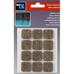 Fieltro de lana adhesivo troquelado en 12 piezas cuadradas de 3 x 22 x 22 mm. Indicado para proteger el suelo de posibles rayas o arañazos, además también silencian el ruido al mover o arrastrar muebles.
