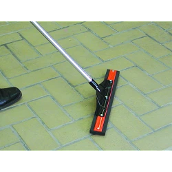 Espátula de solador doble con mango de aluminio. La banda es recambiable y utilizable por los dos lados. Ideal para trabajos profesionales en el revestimiento de suelos.