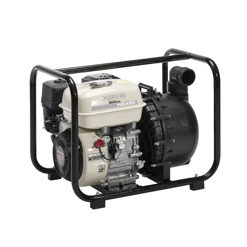 Motobomba de gasolina XGREENS™ WSX20 Powered by Honda para líquidos especiales y racores de 50mm. Ofrece una presión de 30 m y un caudal de 36.000 litros/hora.