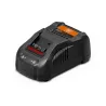 Cargador rápido GAL 1880 CV AS de Fein. Tiempos de carga cortos gracias a la elevada corriente de carga de 8 amperios, la refrigeración de aire activa y la gestión de carga controlada por proceso. Fácil manejo y ahorro de espacio gracias al dispositivo para enrollar el cable de red.