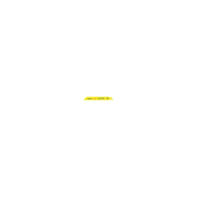 Blíster con 2 hojas Metabo para sierra de sable, adecuadas para madera, madera con clavos, insertos metálicso 5-100, chapas, tubos, perfiles 3-10 mm. A prueba de roturas, flexibles, con grosor < 1,0 mm.