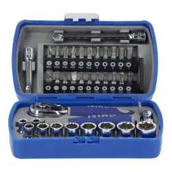 Su diseño compacto y su contenido cuidadosamente seleccionado de 37 piezas lo convierten en un set muy versátil, ideal para ajustar tornillos y tuercas de precisión en espacios reducidos.