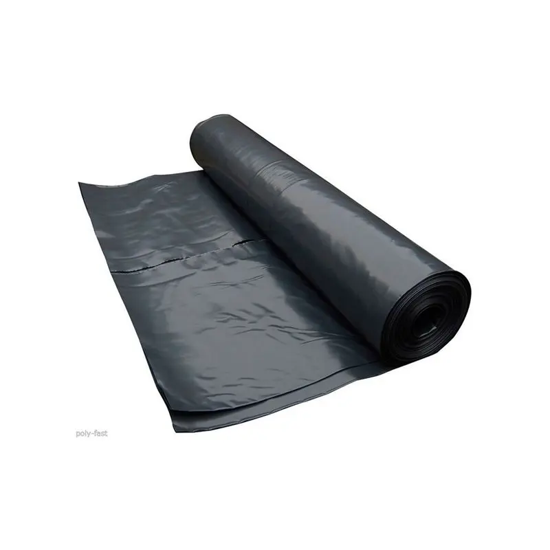 Rollo de lámina de plástico aislante negro de 400 galgas de espesor y 4 metros de ancho plegado a 1,1 m.