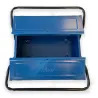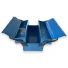 Caja de herramientas metálica con 3 compartimentos: base + 2 cajones laterales.