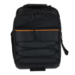 Incluye gancho para flexómetros, bolsillo lateral con banda elástica para herramientas largas o sucias, con el fin de mantener limpio el interior y un asa ergonómica y correa para el hombro acolchada para facilitar el transporte manual.