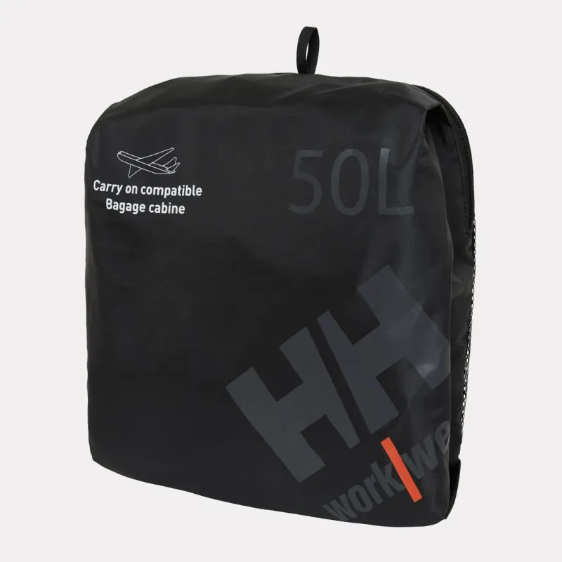 Bolsa de lona de 50 litros de Helly Hansen , de peso ligero, plegable, con compartimento exterior para calzado, bolsillo acolchado para tableta y espacio para botiquín.