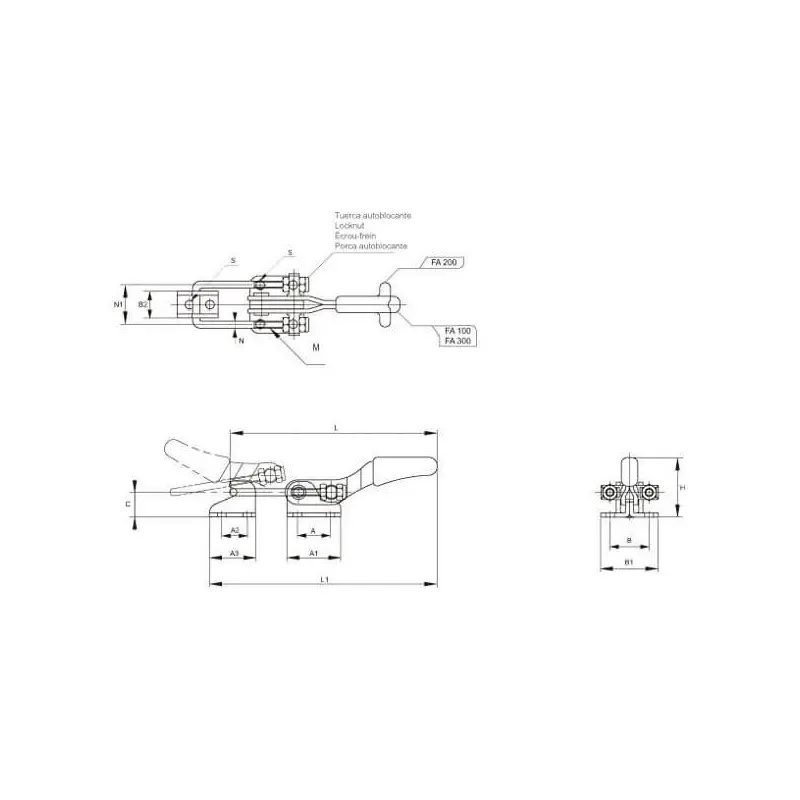 | Modelo | A | A1 | A2 | A3 | B | B1 | B2 | C | H | L | L1 min. | L1 max. | M | N | N1 | S | Fuerza max. de sujeción | Recorrido |