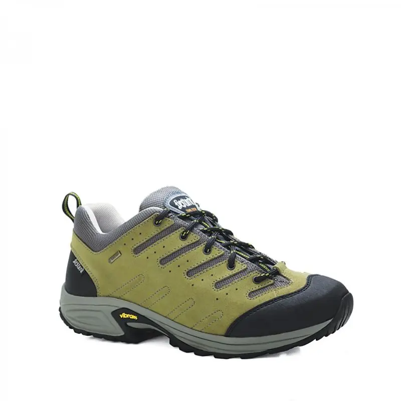 Está fabricado en piel de serraje y Cordura® hidrófugos con refuerzos de caucho sintético en la puntera y el talón.