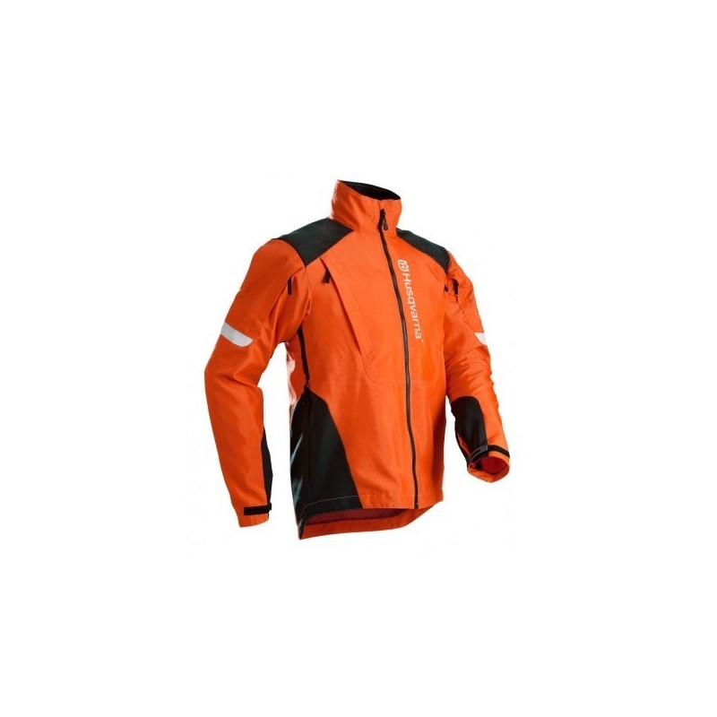 Chaqueta para desbroces Technical de Husqvarna, ideal para trabajos en los que se utilicen arneses sobre los hombros, como trabajos con desbrozadoras.